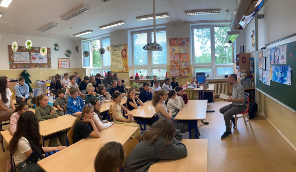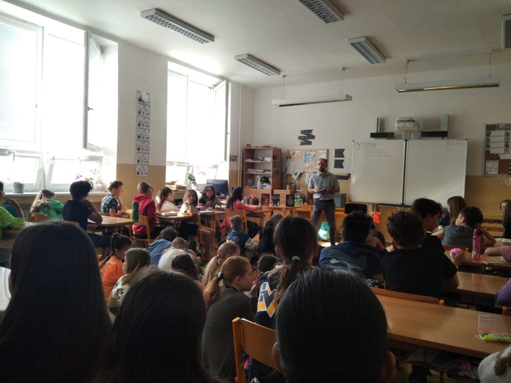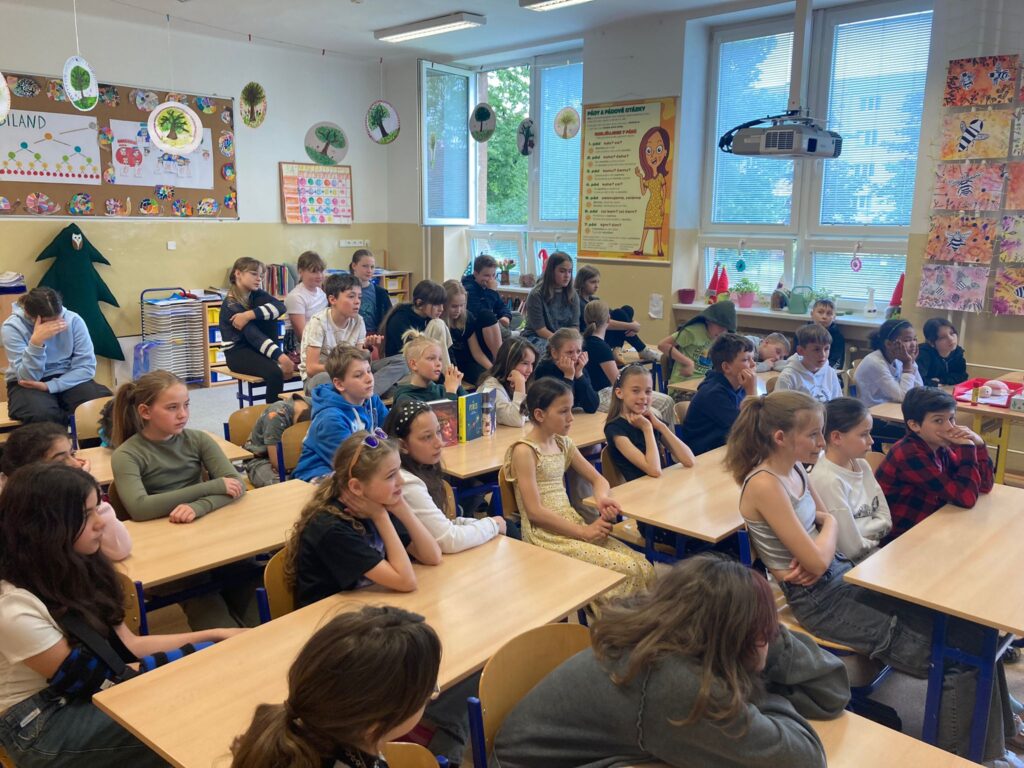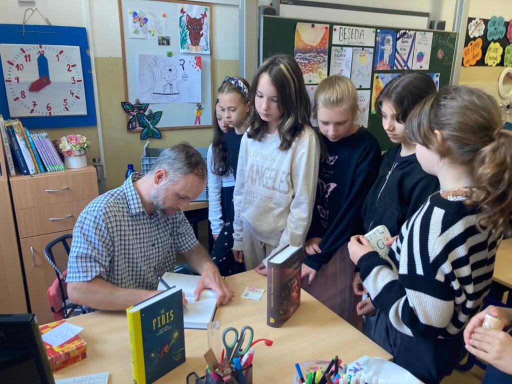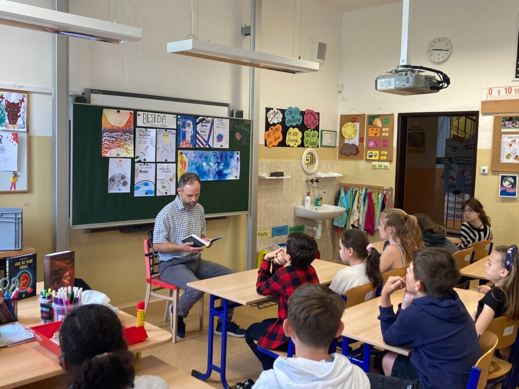 V pátek se žáci některých tříd zúčastnili besedy s panem spisovatelem Václavem Dvořák. Ten jim přečetl ukázku ze své knihy Já, Finis. Následně se děti pana spisovatele ptaly na otázky k představeným knihám i samotný život a práci spisovatele. Mnohé z dětí si pak s radostí vybranou knížku koupily, přičemž jim do ní napsal věnování sám autor.