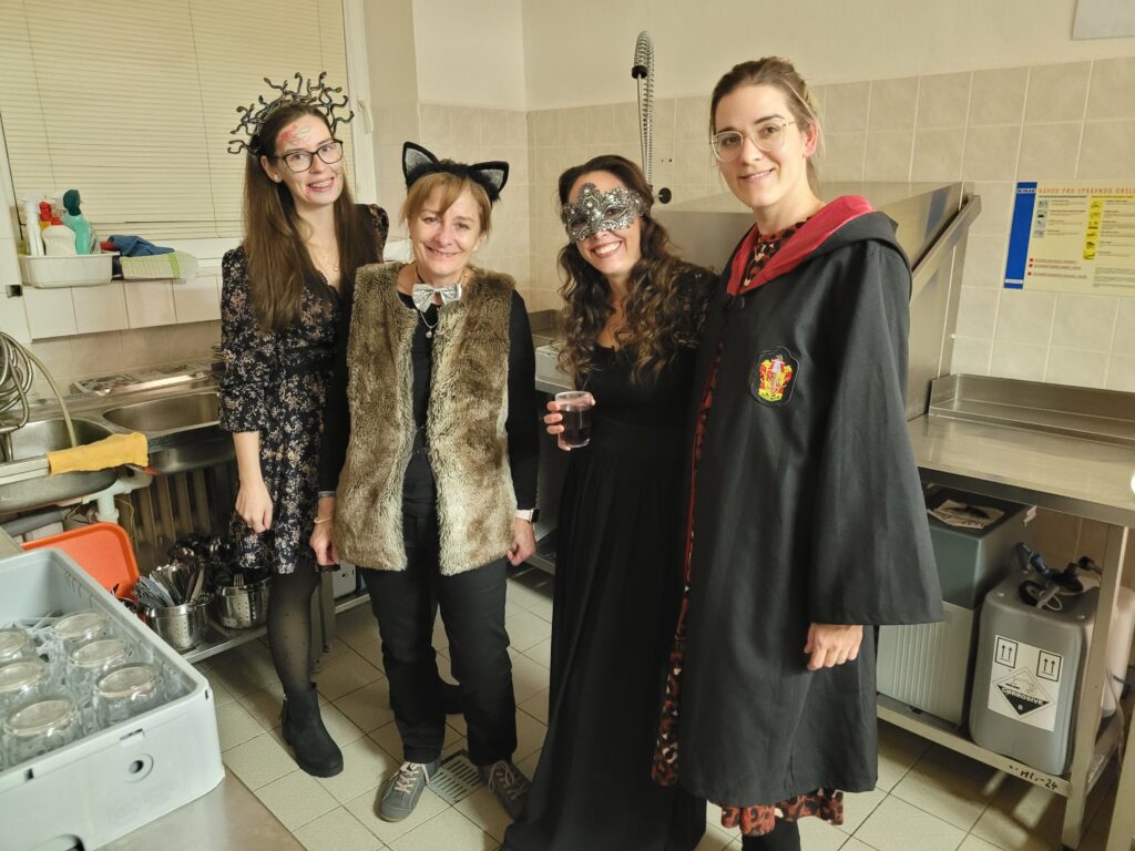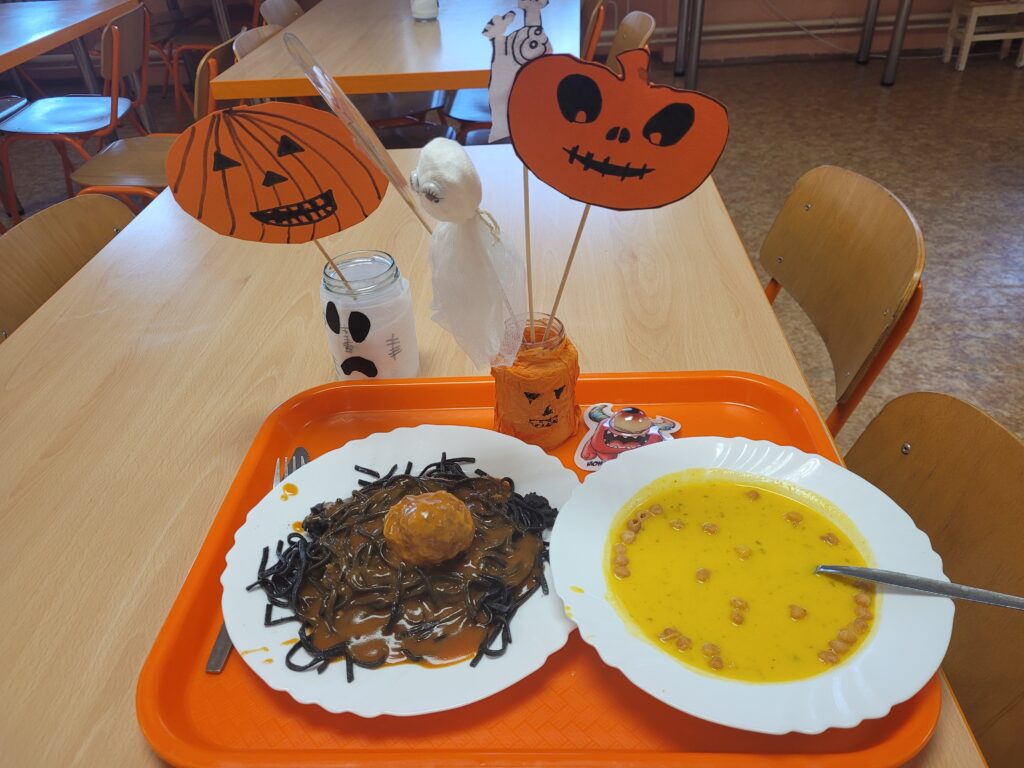 Rok se rokem sešel a opět se to u nás odpoledne a v podvečer hemžilo děsivými halloweenskými příšerami. Školní jídelna se proměnila ve strašidelnou kobku, kde se strašidlům a jejich příbuzenstvu nabízelo menu s podivnými