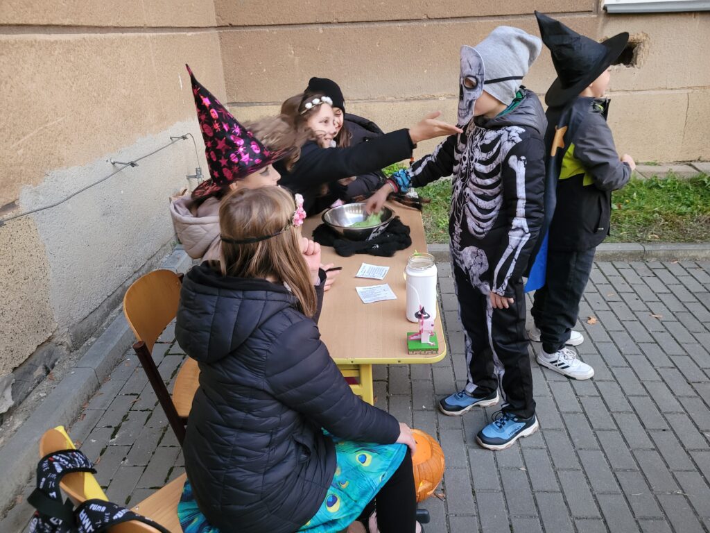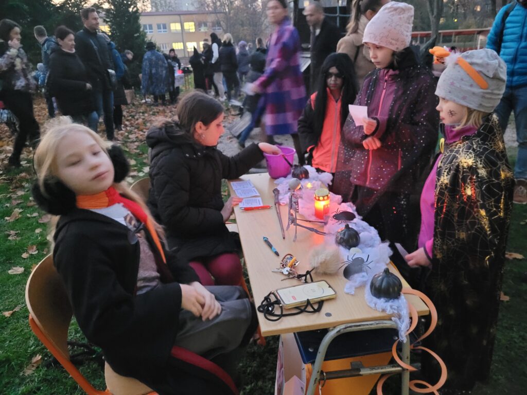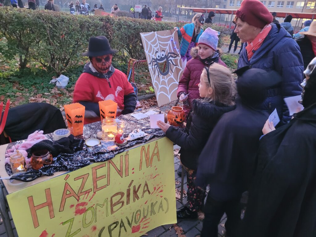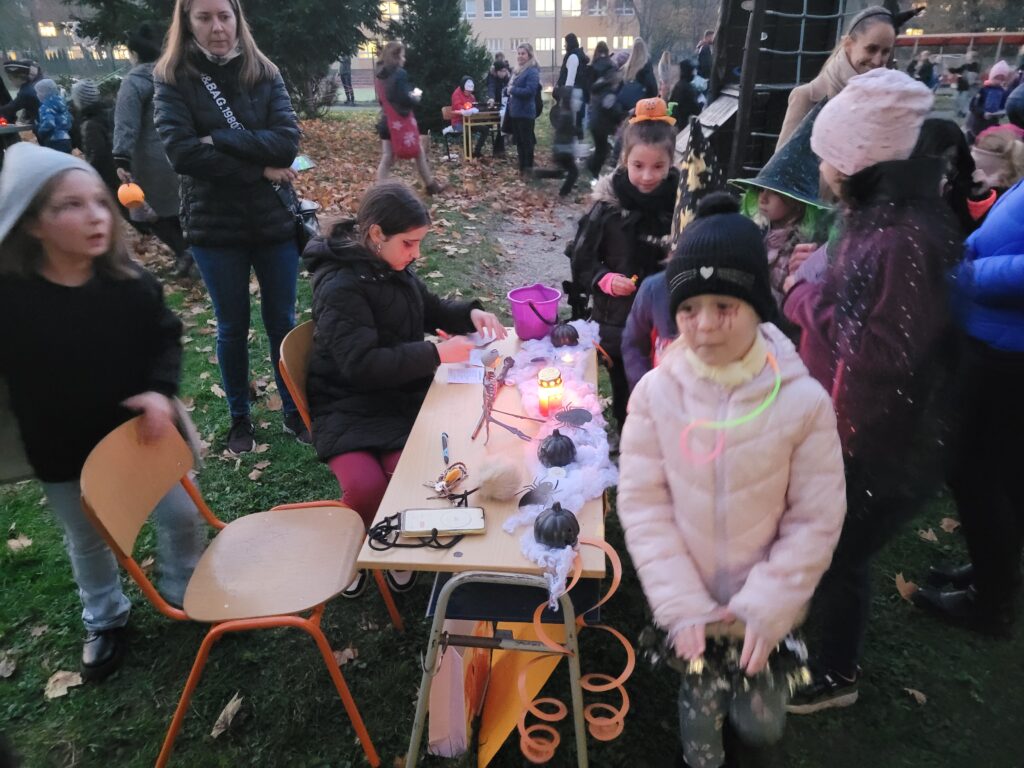 Zábavné strašidelné úkoly i stezku odvahy si pro své mladší spolužáky připravili páťáci se svými třídními učitelkami. Ve školní jídelně se zájemci mohli poručit čertovy podrážky, žabí očka, bylinné lektvary, upíří krev a jiné dobroty.