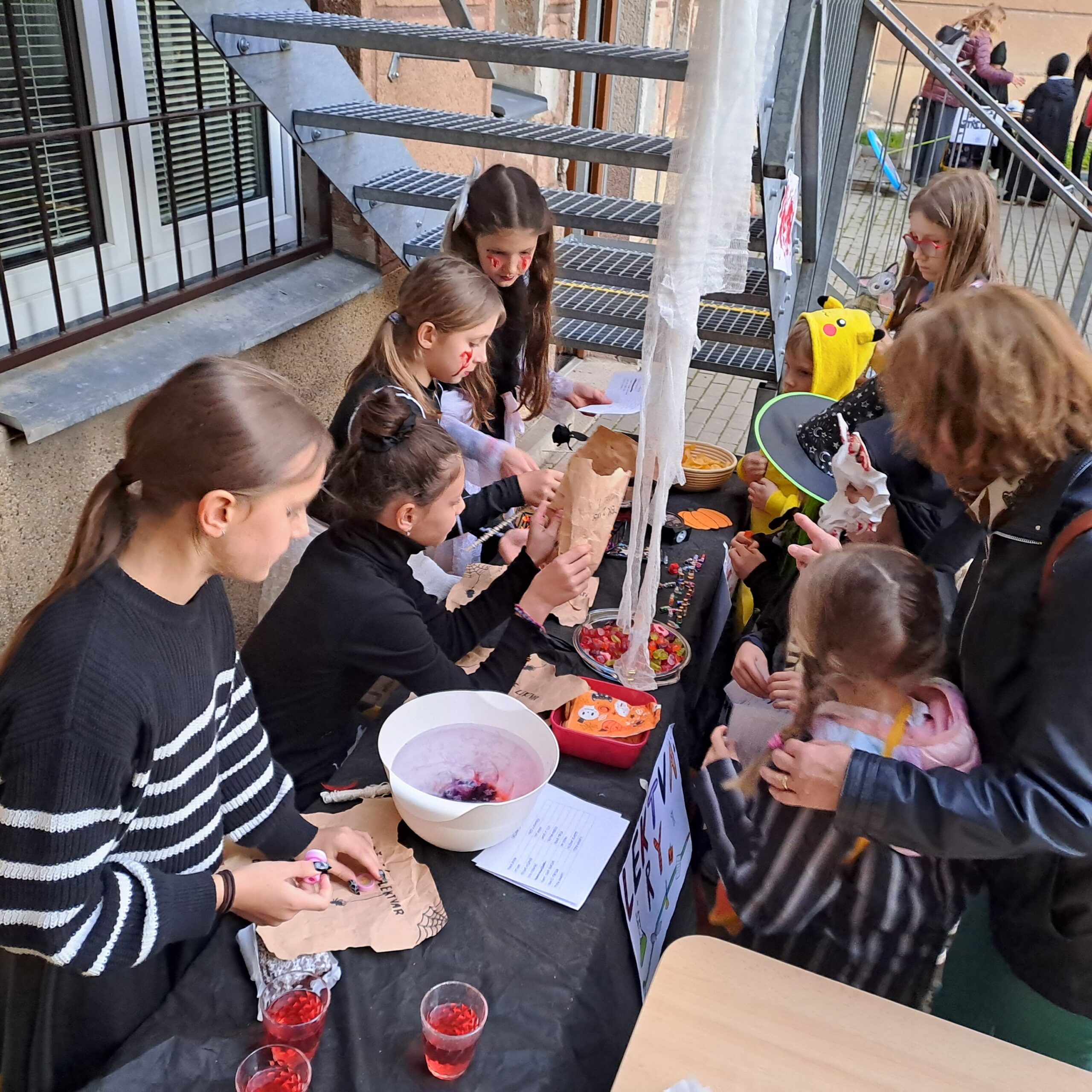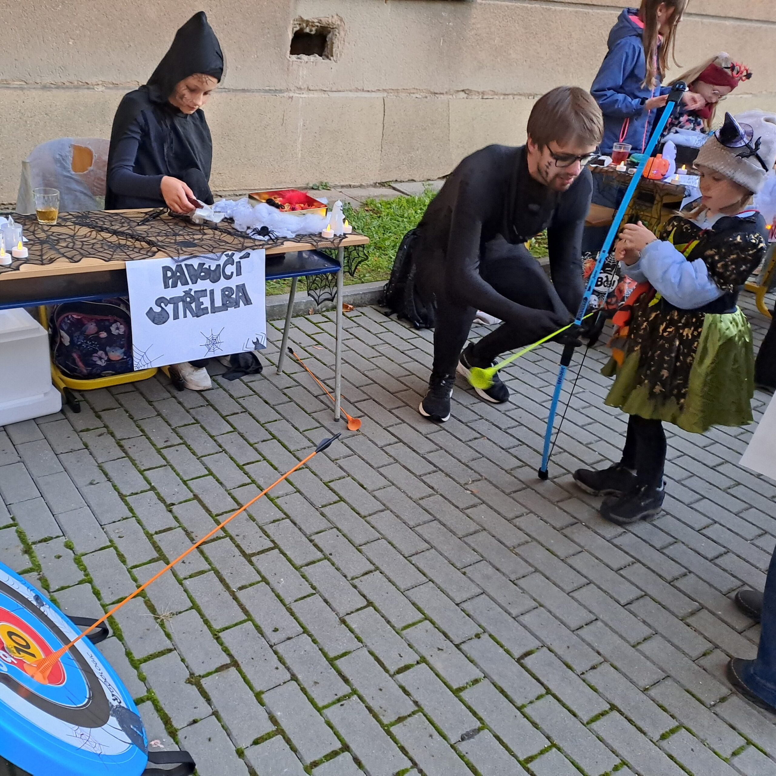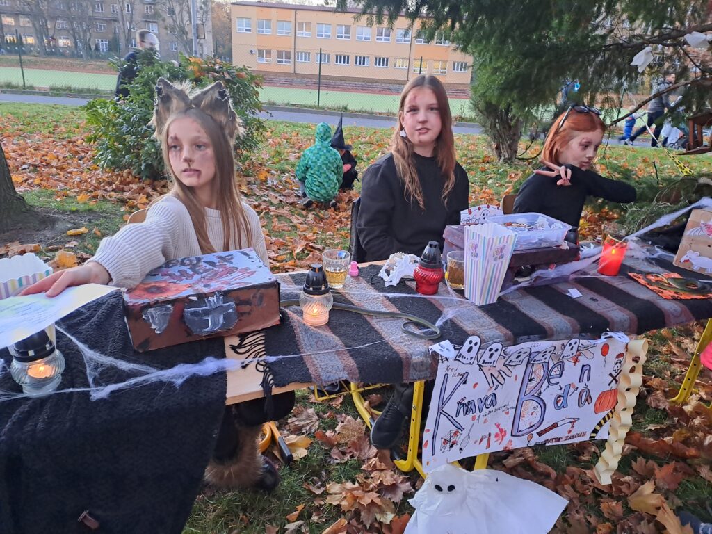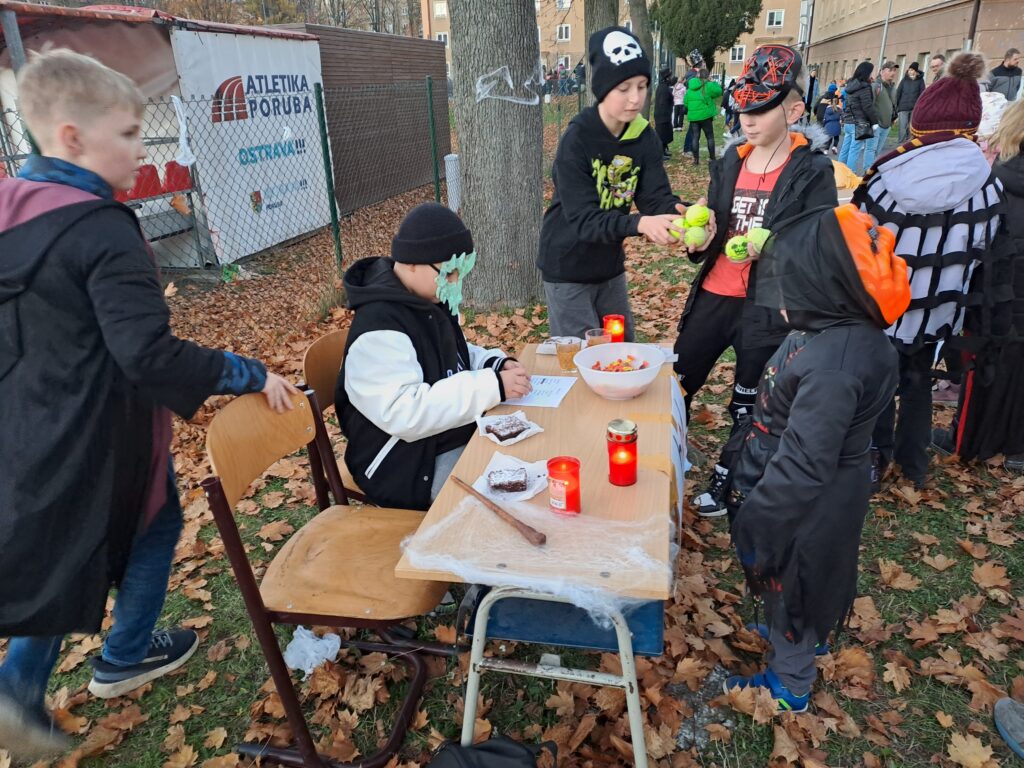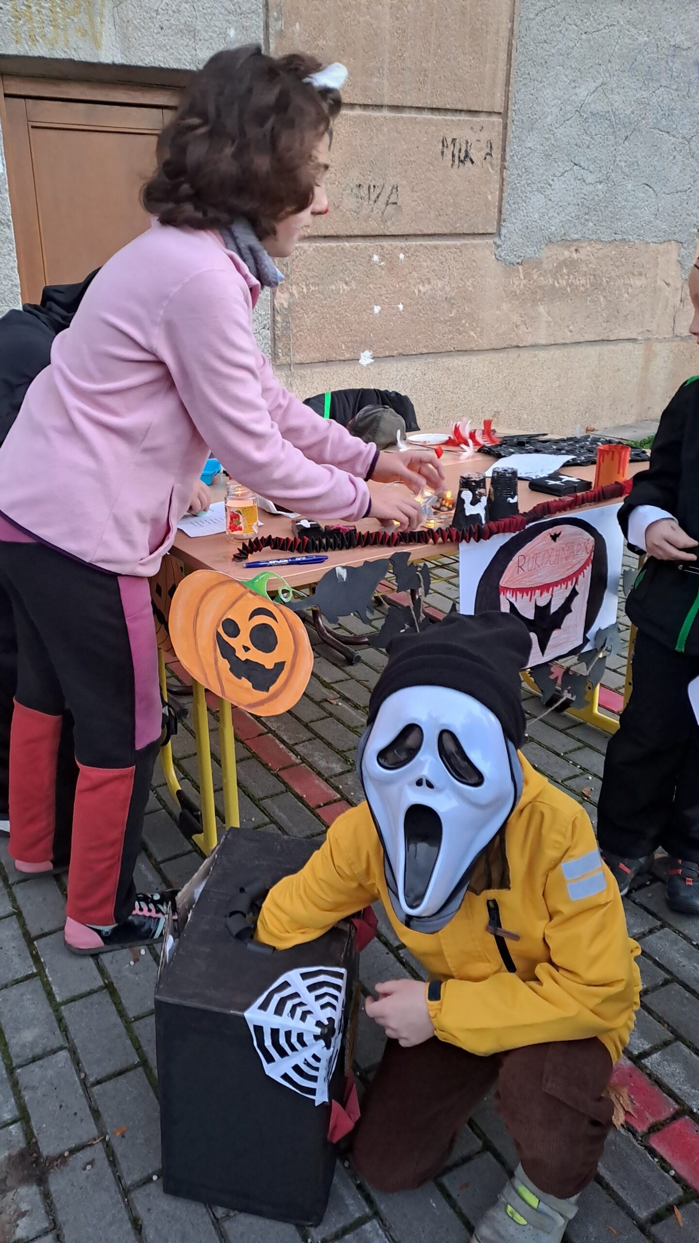 Na školním dvoře probíhal divoký rej obludek a příšerek – páťáci se svými třídními učiteli pro své mladší spolužáky připravili zábavné strašidelné úkoly i stezku odvahy.